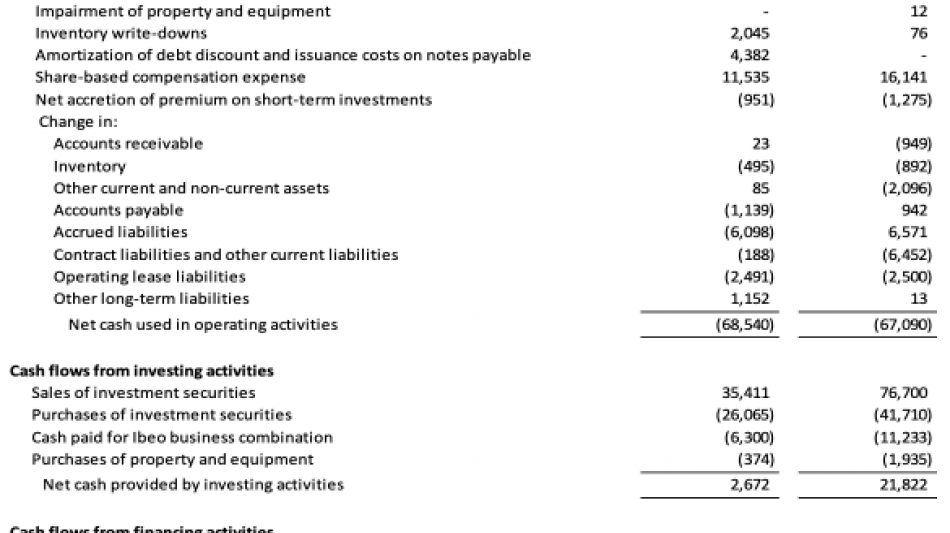 Der Mittelabfluss aus der gewöhnlichen Geschäftstätigkeit lag im vierten Quartal 2024 bei 15,0 Millionen $ im Vergleich mit einem Mittelabfluss aus der gewöhnlichen Geschäftstätigkeit im vierten Quartal 2023 von 16,6 Millionen $.